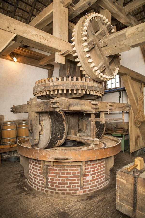 Hij liet de molen herbouwen met drie onderslagraderen en een bovenslagrad voor het geval de Buurserbeek bijna droog zou komen te staan, dan kon hij toch nog blijven malen.